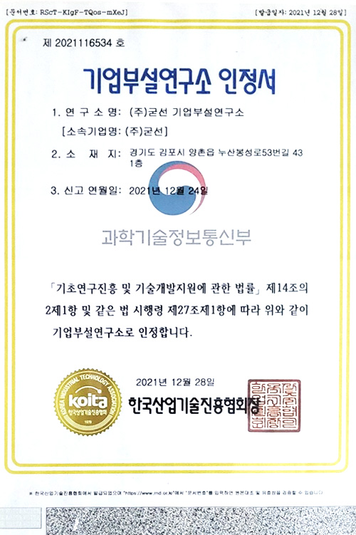 기업부설연구소 인정서