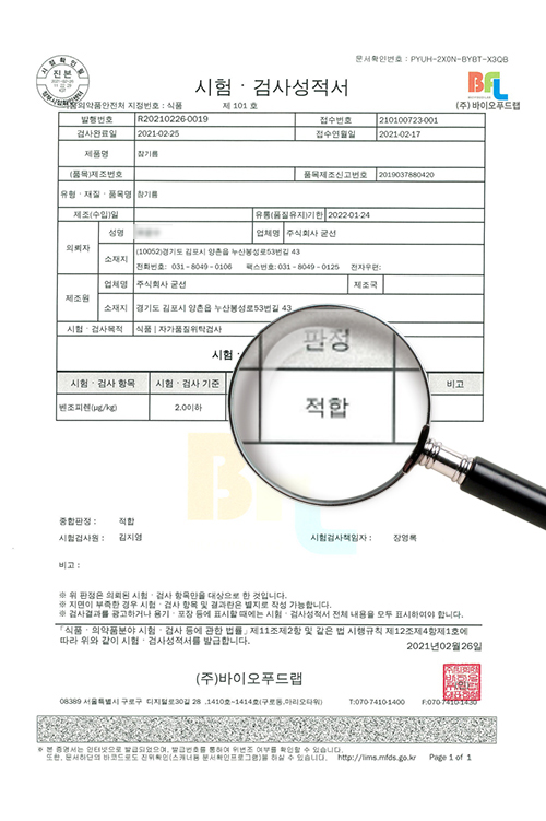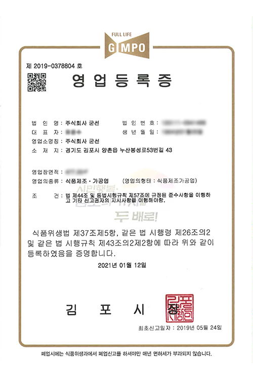 영업등록증(식품제조가공업)